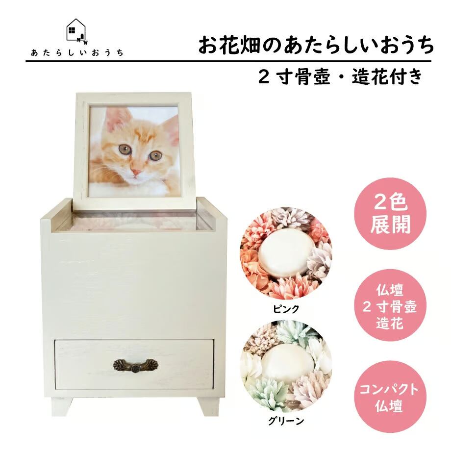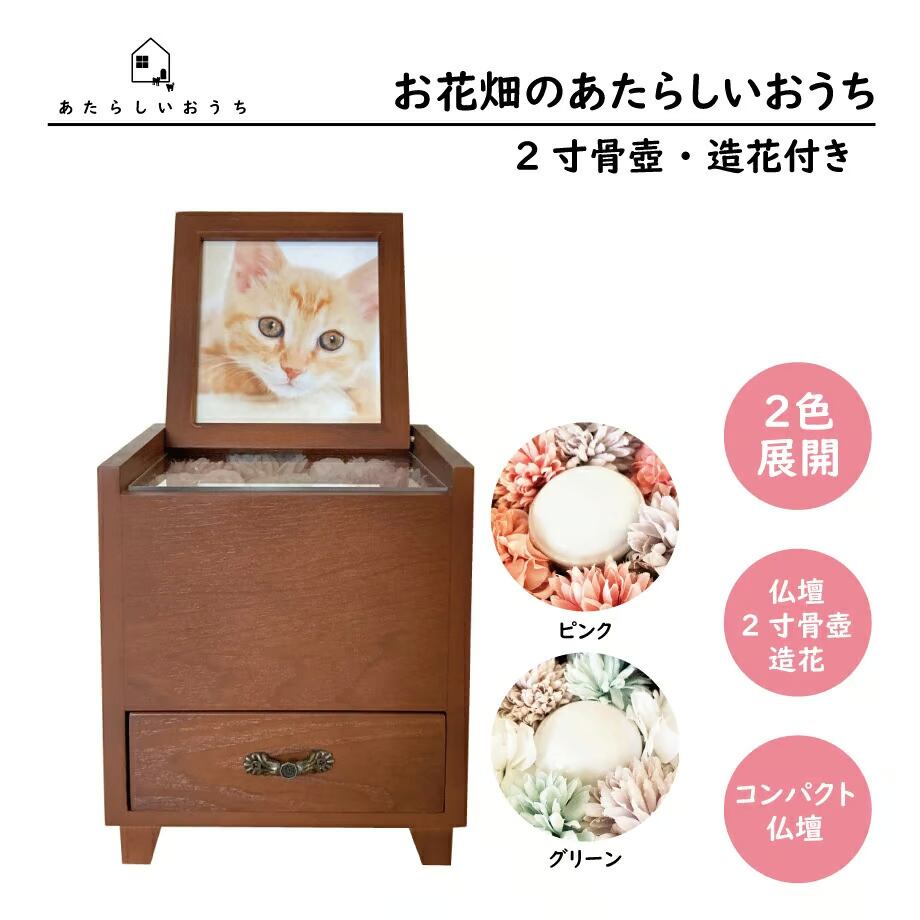 ペット仏壇『お花畑のあたらしいおうち』2寸骨壷+造花付き
